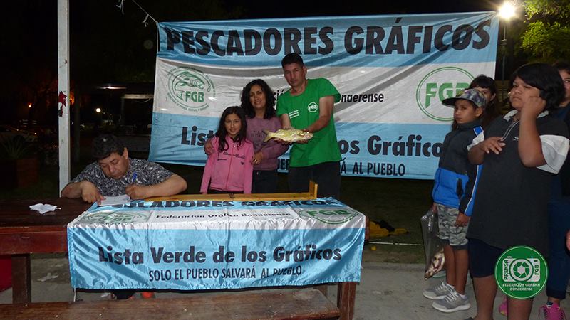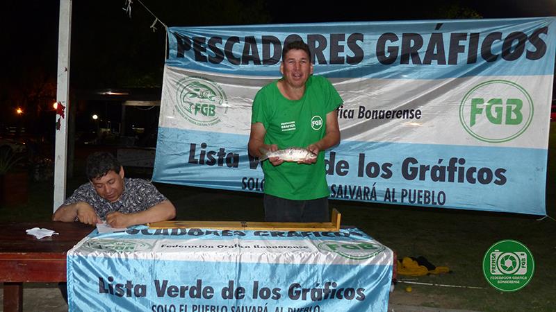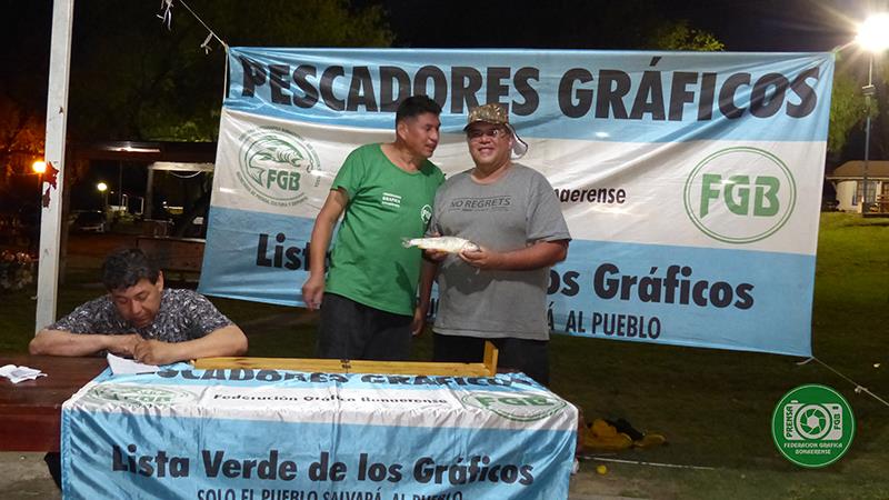 El Torneo Anual de Pesca 2018 que organiza la Subcomisión de Pesca de nuestro Sindicato cerró el año con una excursión a la localidad entrerriana de Santa Elena, ubicada sobre el río Paraná. Los ganadores fueron: 1º Guillermo Jerez del taller Util Off, quien capturó una manduba de 51,5 cm.; segundo Andrés Samaniego con una tararira de 47 cm.; 3º Daniel Milton con una boga de 45,5 cm. Hubo una mención especial para la grafiquita Sofía Giménez que pescó un bagre de 36,8 cm.